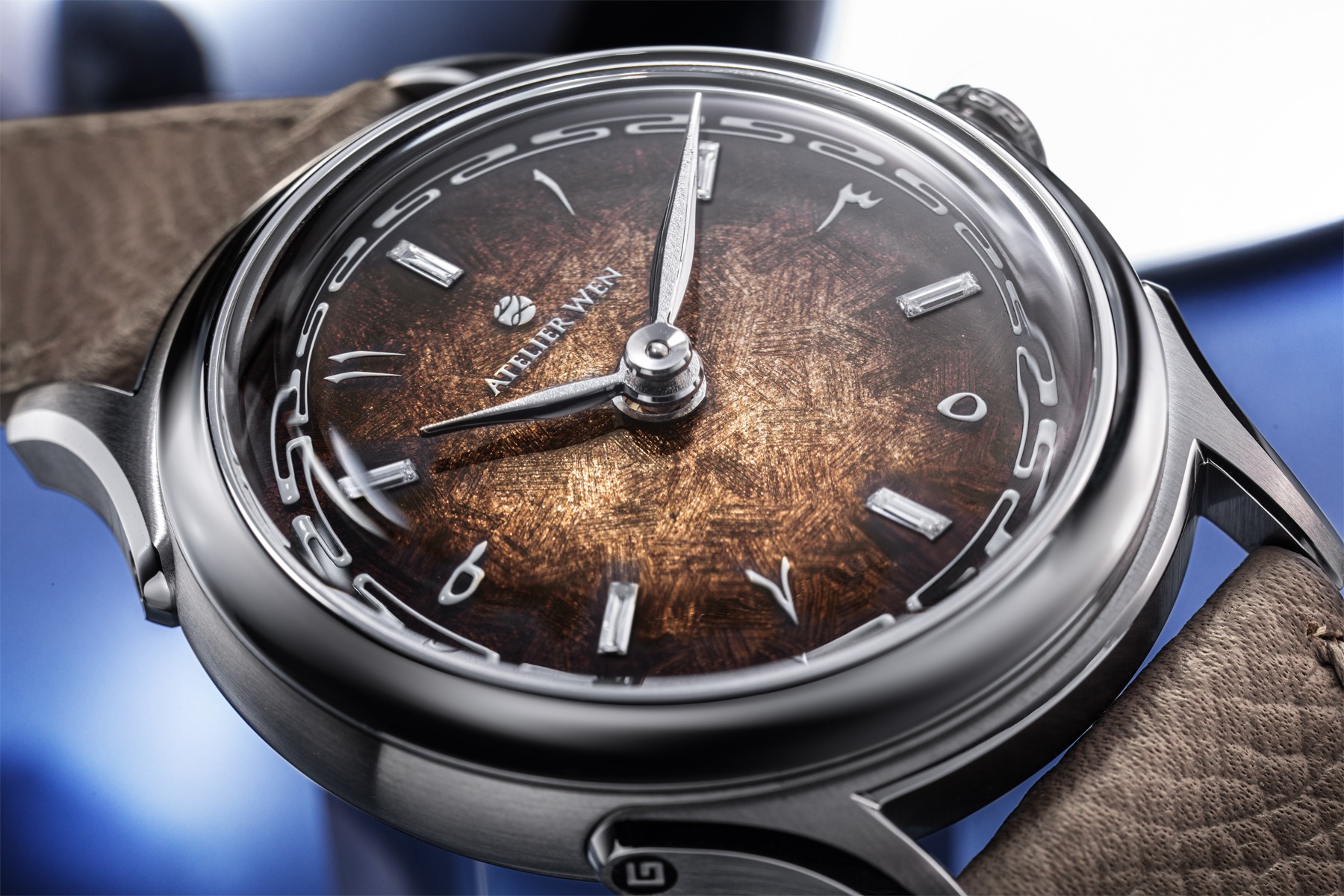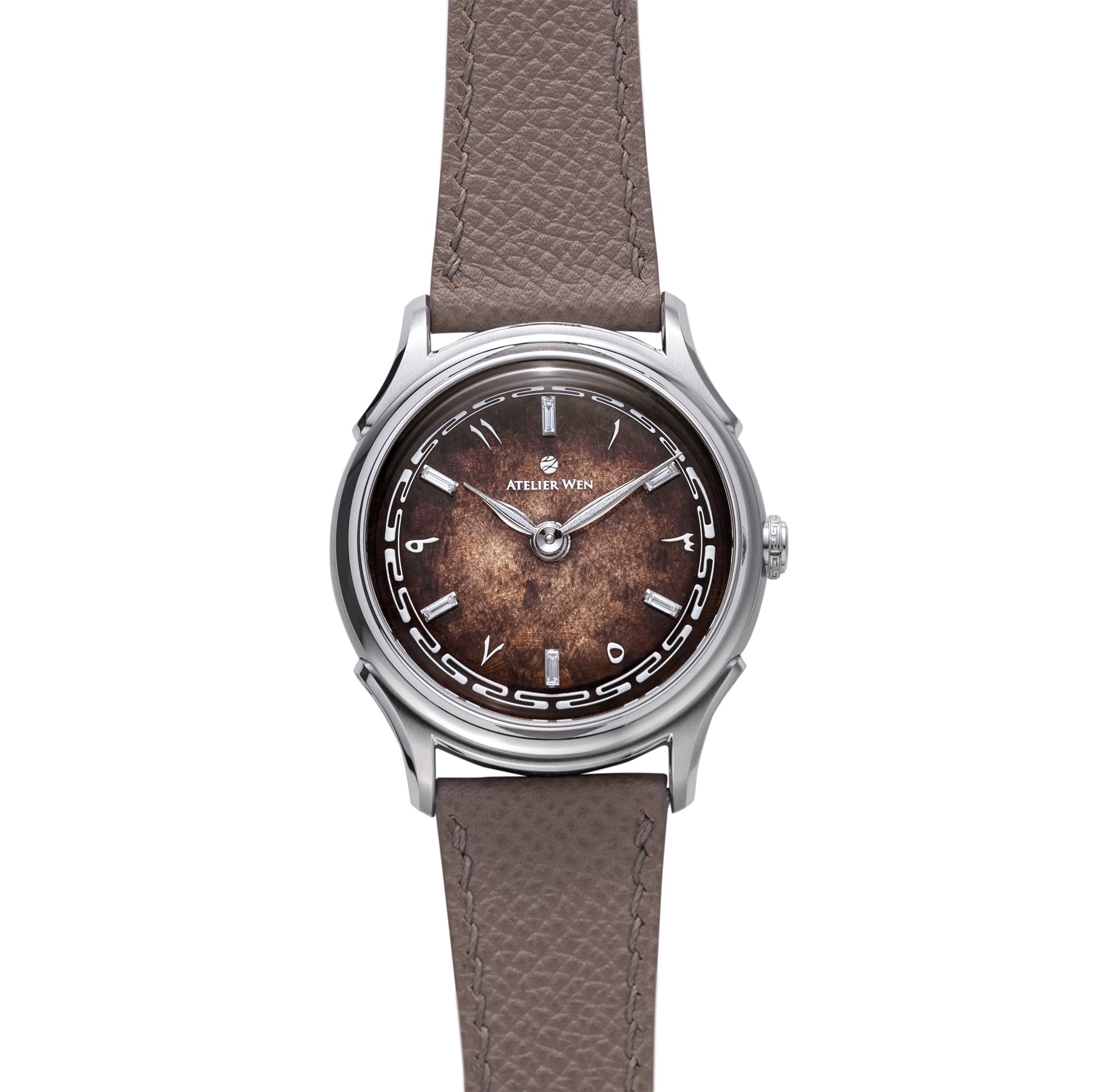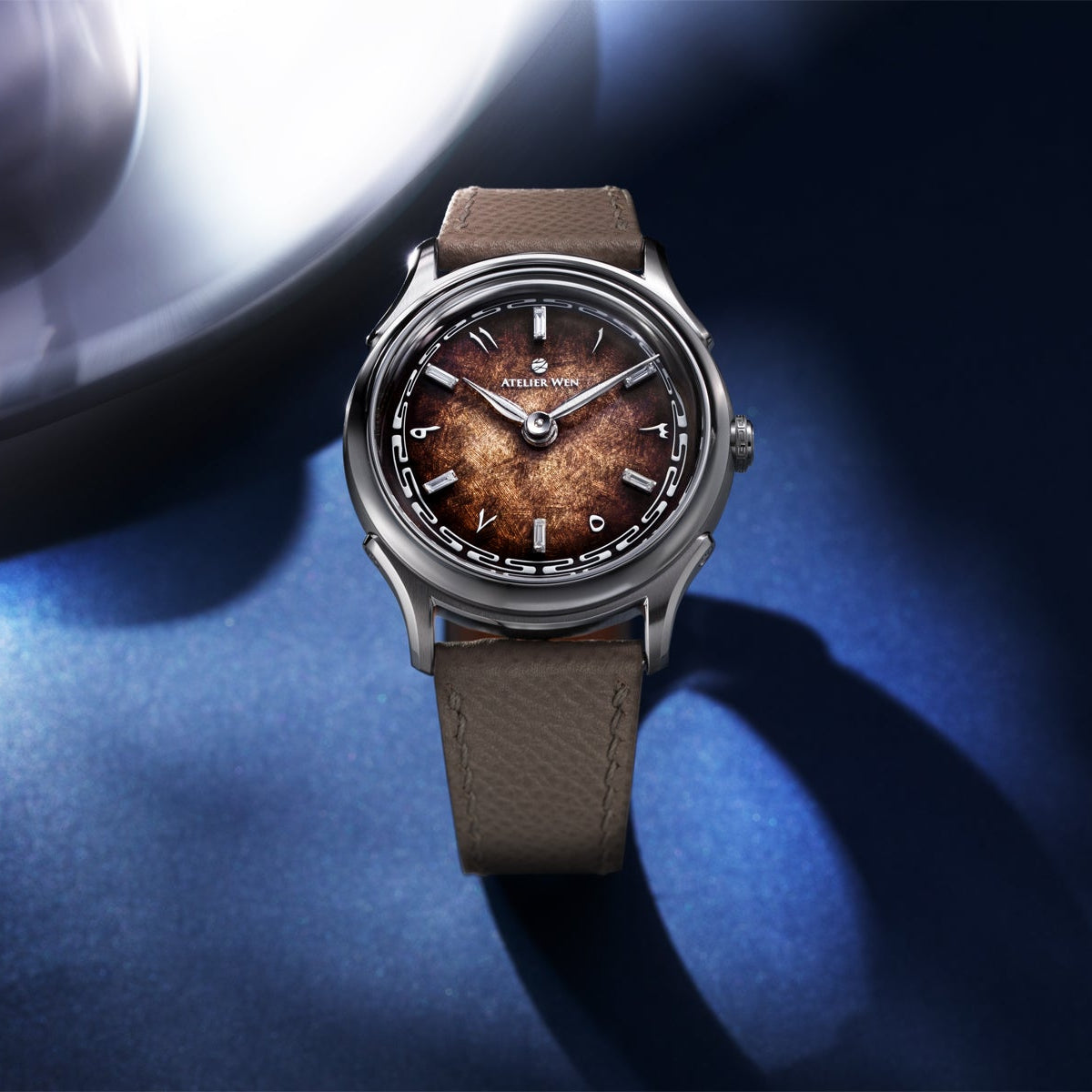 For the first time, Atelier Wen presents a piece created specifically for Dubai Watch Week—a dial crafted in translucent enamel that pays tribute to the sands of the desert and the ancient trade routes that once connected civilizations. The enamel features a magnificent fumé effect, transitioning from warm desert sand at the center to a deep, dark chocolate tone along the periphery. Adding depth and texture, the dial base is incorporated with a gratté surface, hand-scratched to create a striking interplay of light and grain. This artisanal work is executed by Master Kong Lingjun in his Beijing atelier, further underscoring the meticulous craftsmanship behind the piece. To heighten its sophistication, the dial is adorned with Eastern Hindu-Arabic numerals, alternating with baguette diamond hour markers. The result is a refined fusion of aesthetics—a bridge between Greater China and the Middle East, celebrating the shared heritage, artistry, and cultural exchange that bind these regions together.